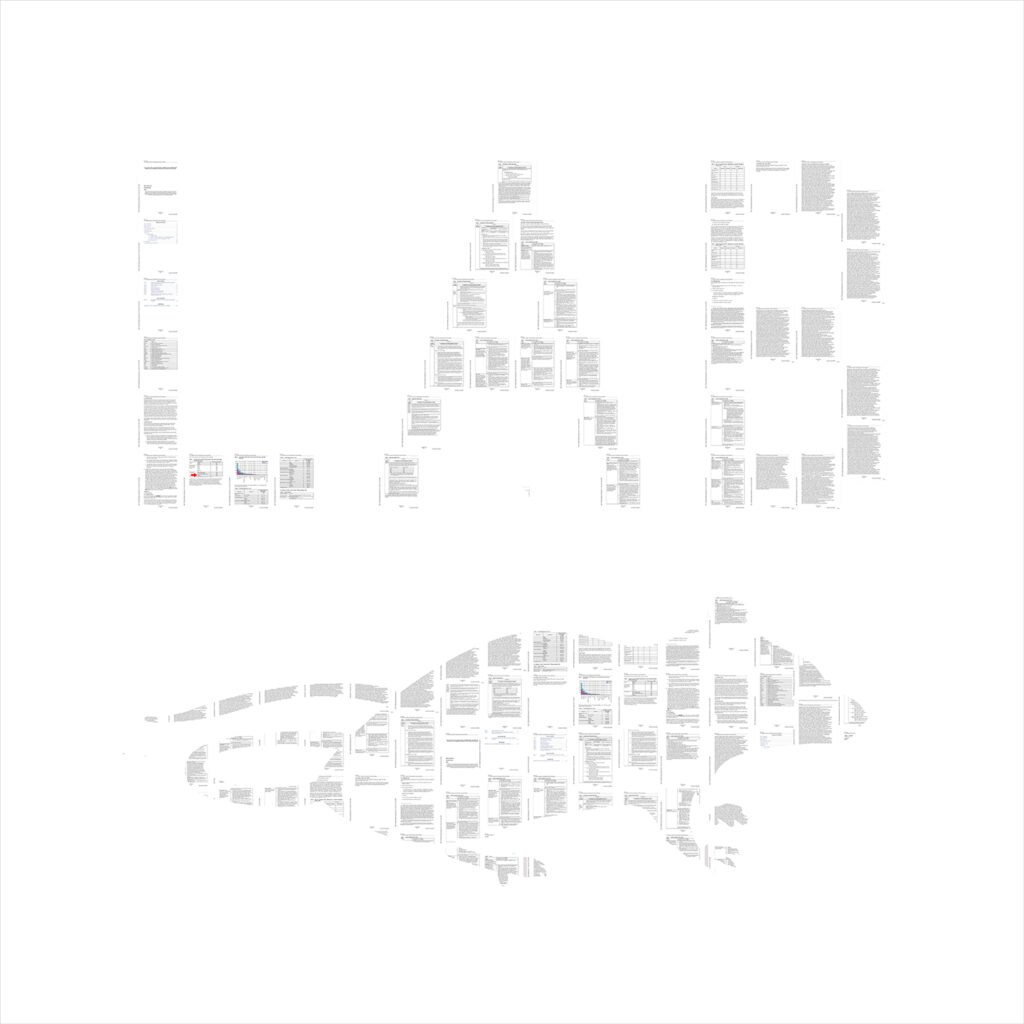 This art piece showcases the complete 38-page document writing the words “LAB.” There is also a rat below composed of the same documents.