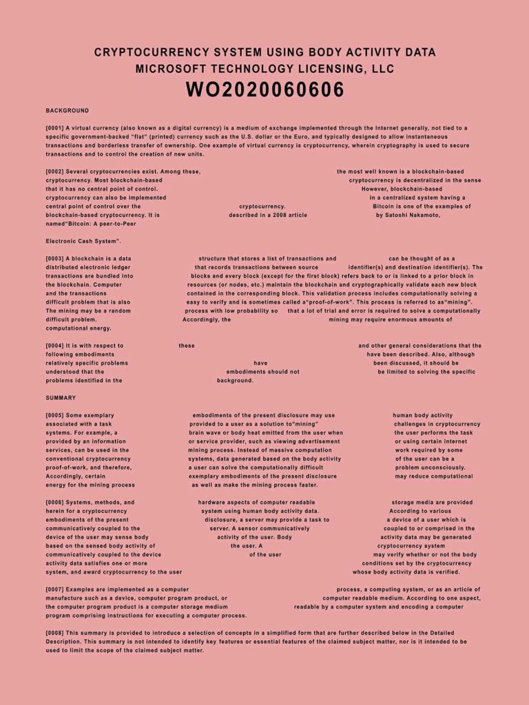 In other words, this is a patent to link various body activities to the Microsoft company’s servers, which shows a form of corporate surveillance or surveillance capitalism. Certain activity mines or earns money in the form of a cryptocurrency.